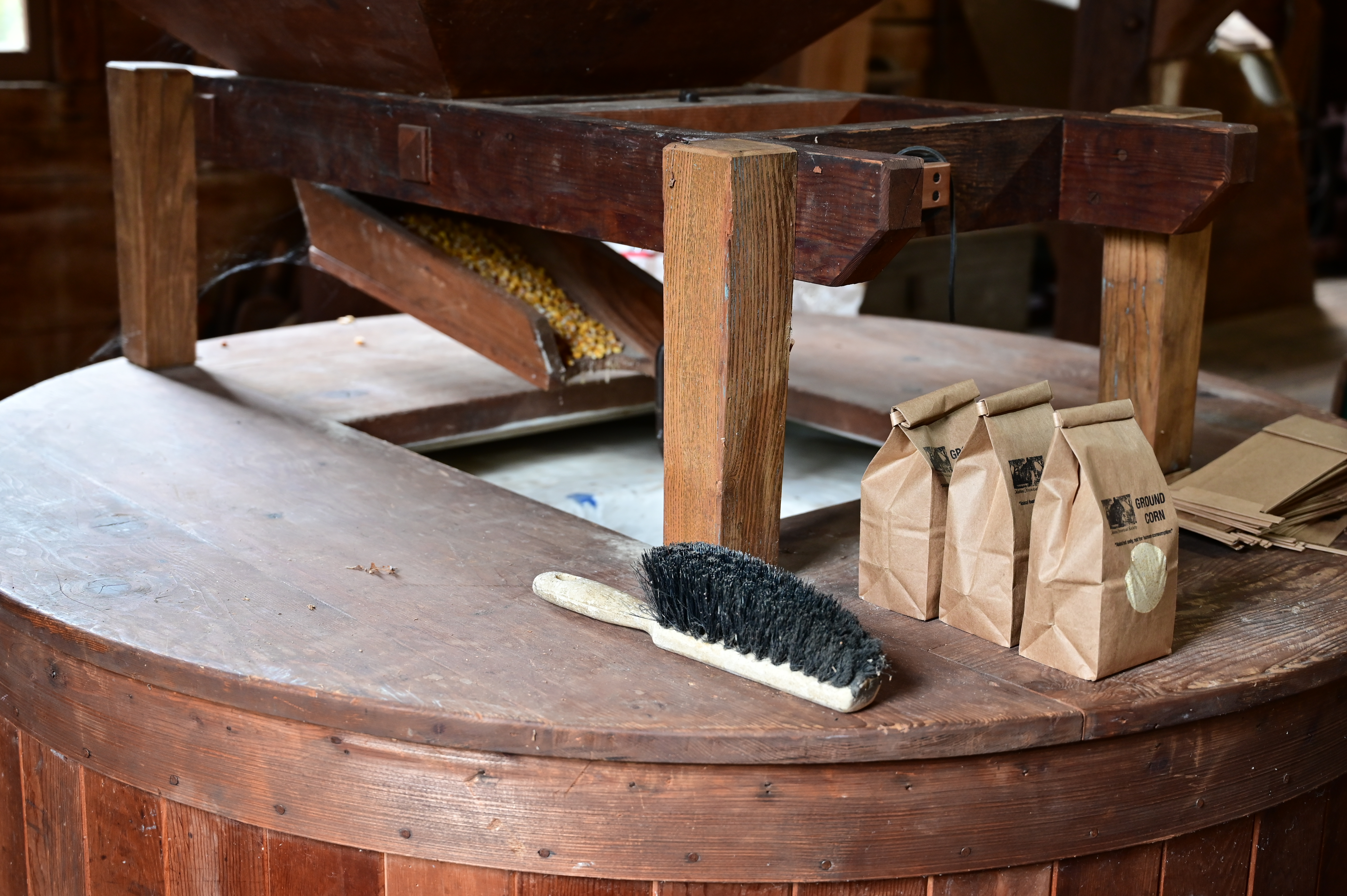 As a result of World War I, the gristmill switched from focusing on flour production to livestock feed production. After decades of operation, the industry changed and the sawmill was shut down as a result of the lack of lumber. In addition, blacksmith shop was also closed. The gristmill continued to operate with water power until 1961, but as a result of a low water supply and mechanical issues, the gristmill was converted to operate off electricity.